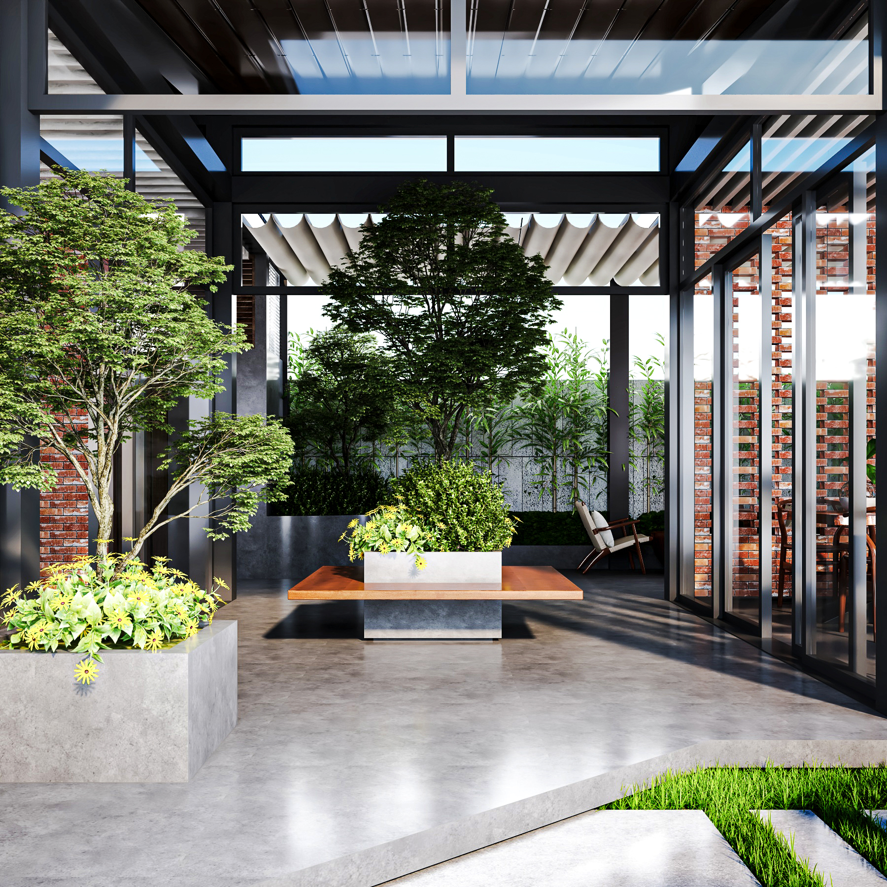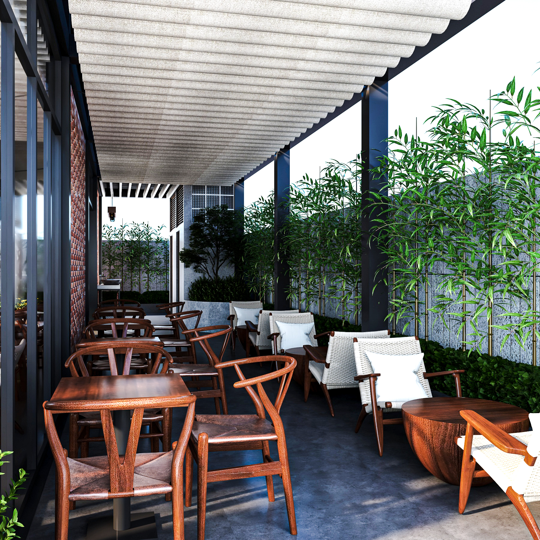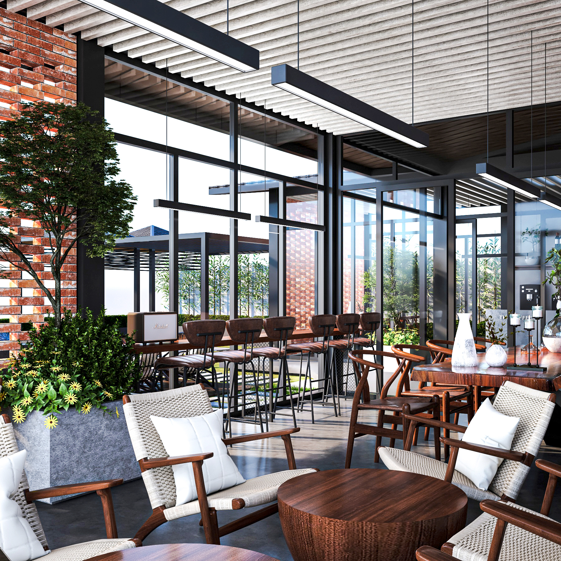 Dự án Garden coffee được thiết kế kết hợp nhà khung sắt với gạch trần không trát để tăng sự tương phản và độc đáo cho công trình, sử dụng bê tông sơn mài tạo ra chất riêng. Với bài toán muốn tạo nên một không gian hòa mình được với thiên nhiên đội ngũ thiết kế đã nghiên cứu để mang đến không gian tối ưu nhất về công năng sử dụng cũng như các diện tích dành cho không gian xanh. Đem đến cảm nhận tốt nhất về mặt trải nghiệm kiến trúc nội thất cho khách hàng.
