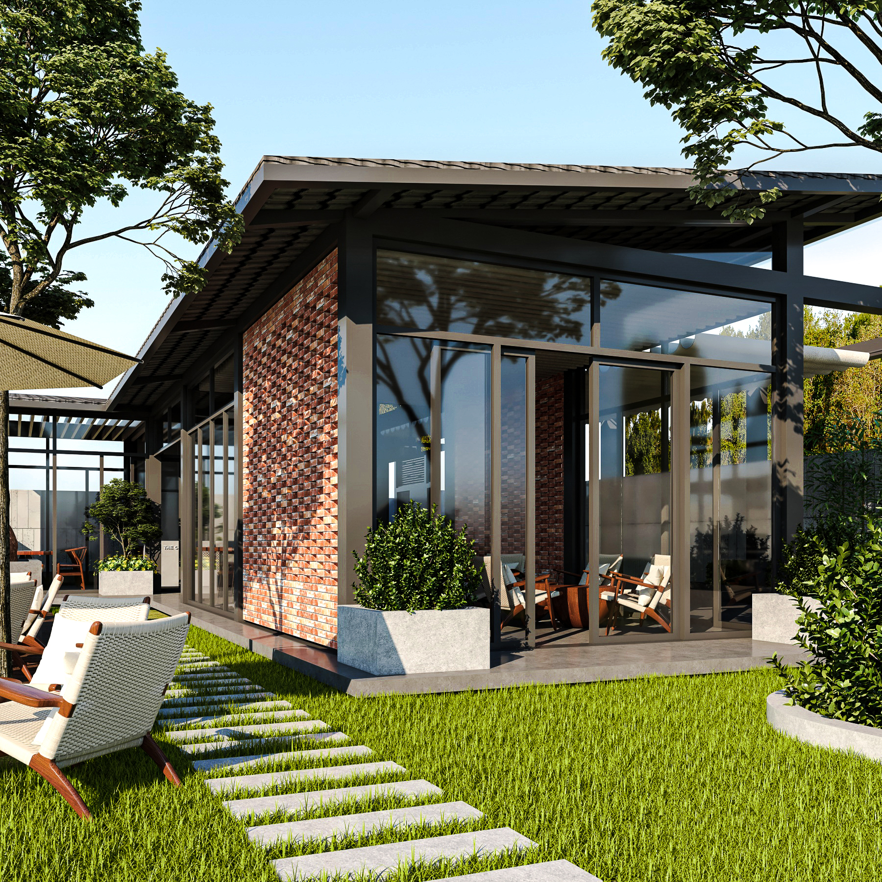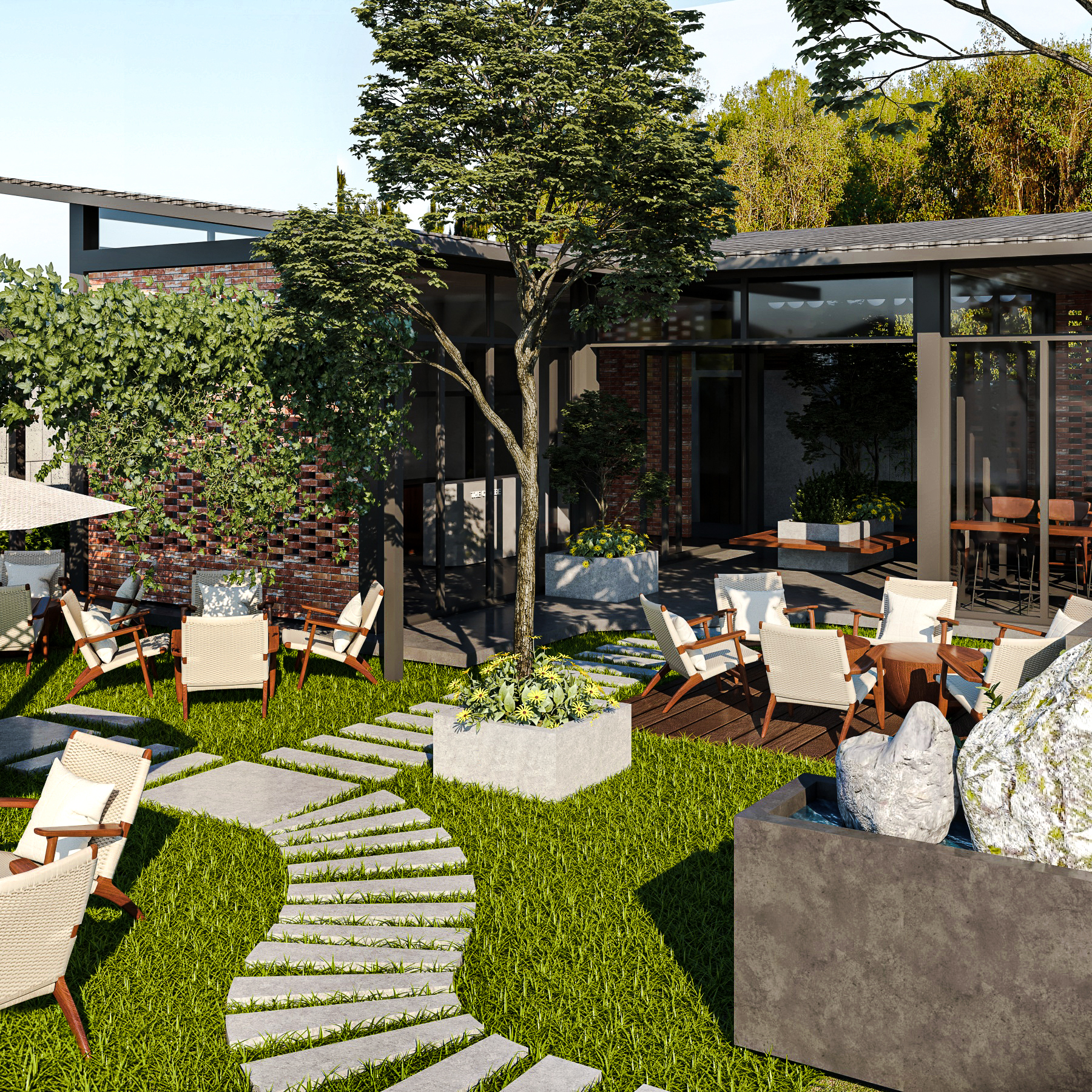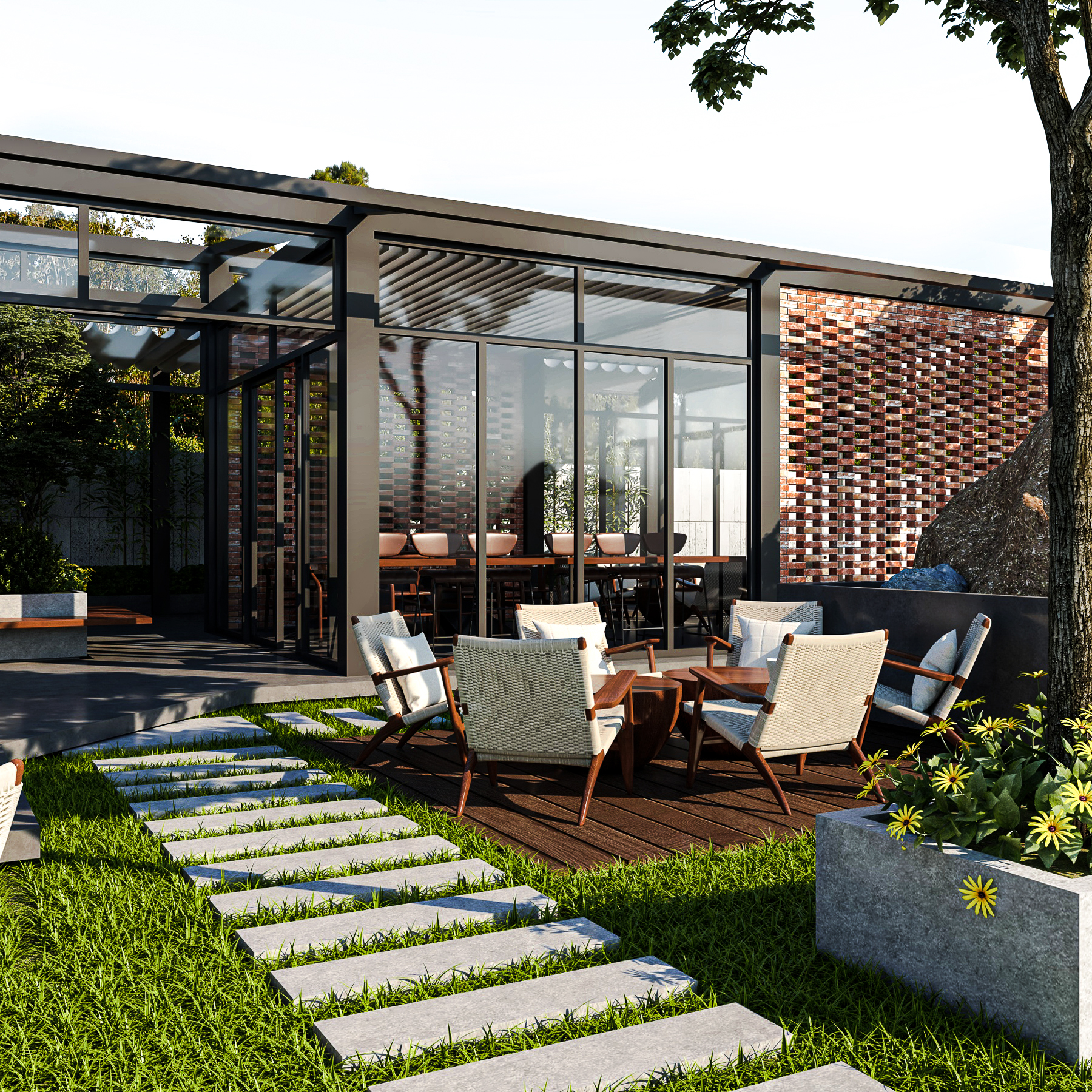 Dự án Garden coffee được thiết kế kết hợp nhà khung sắt với gạch trần không trát để tăng sự tương phản và độc đáo cho công trình, sử dụng bê tông sơn mài tạo ra chất riêng. Với bài toán muốn tạo nên một không gian hòa mình được với thiên nhiên đội ngũ thiết kế đã nghiên cứu để mang đến không gian tối ưu nhất về công năng sử dụng cũng như các diện tích dành cho không gian xanh. Đem đến cảm nhận tốt nhất về mặt trải nghiệm kiến trúc nội thất cho khách hàng.
