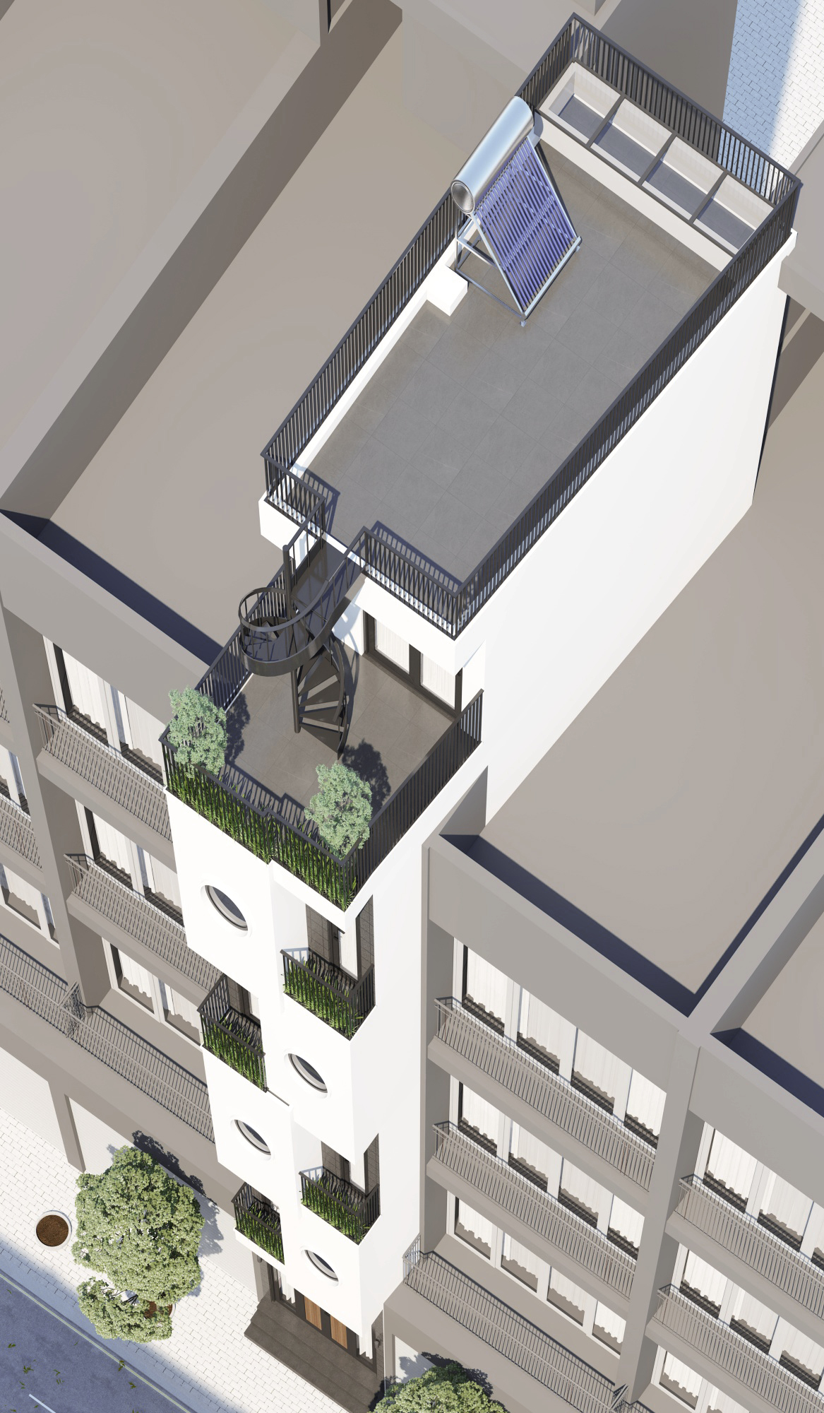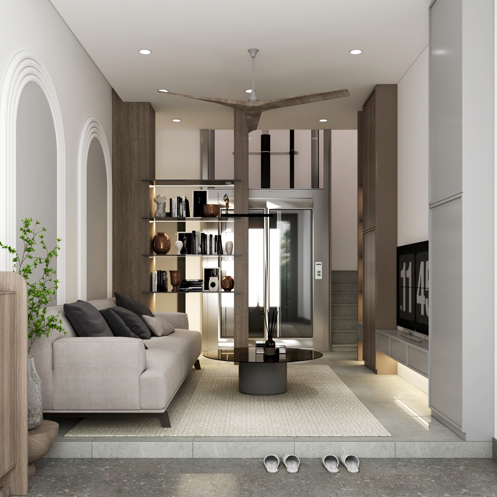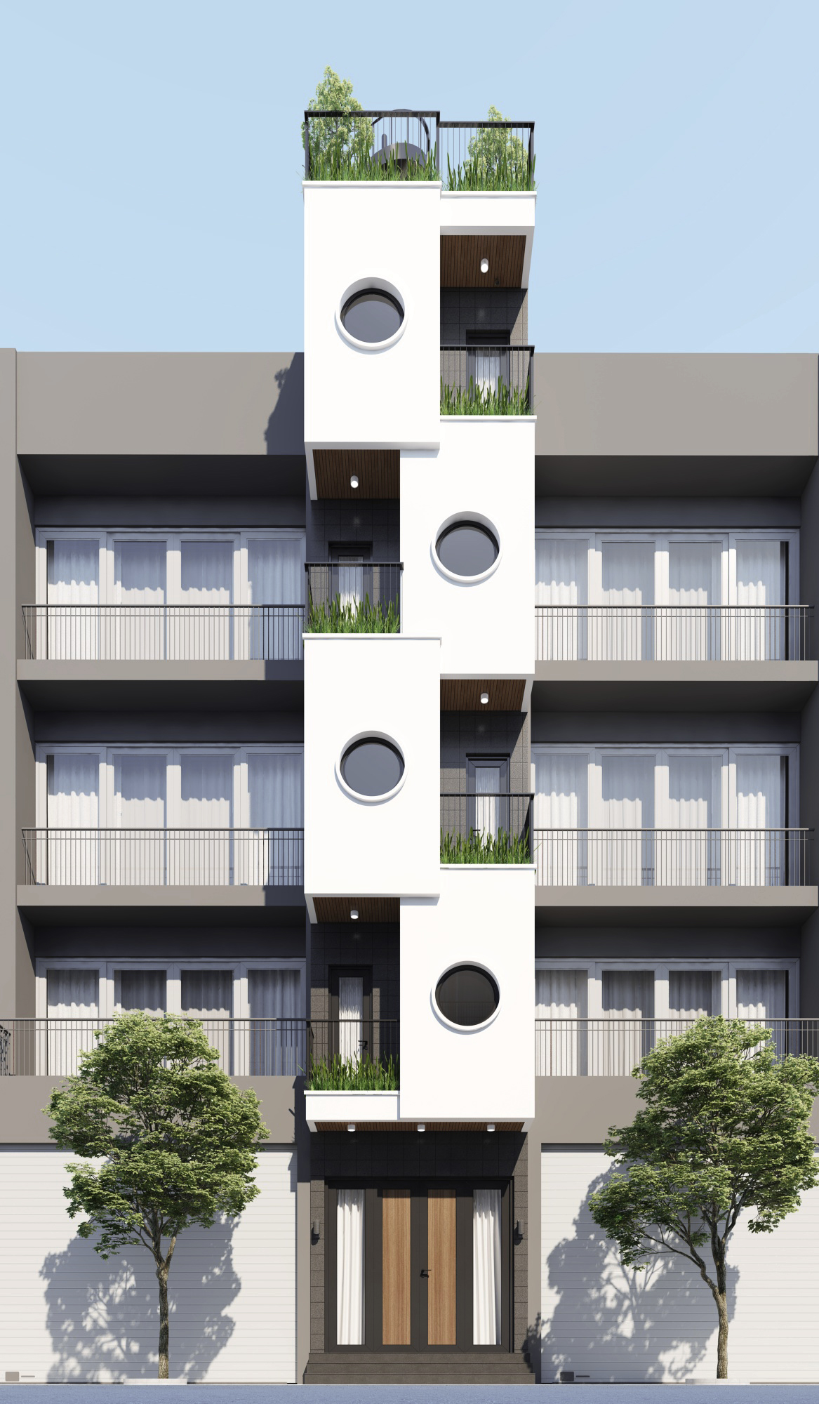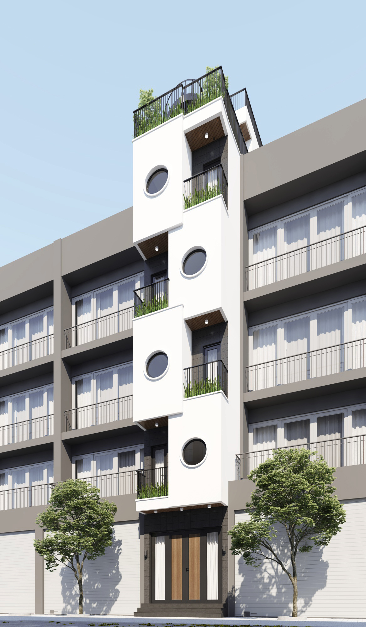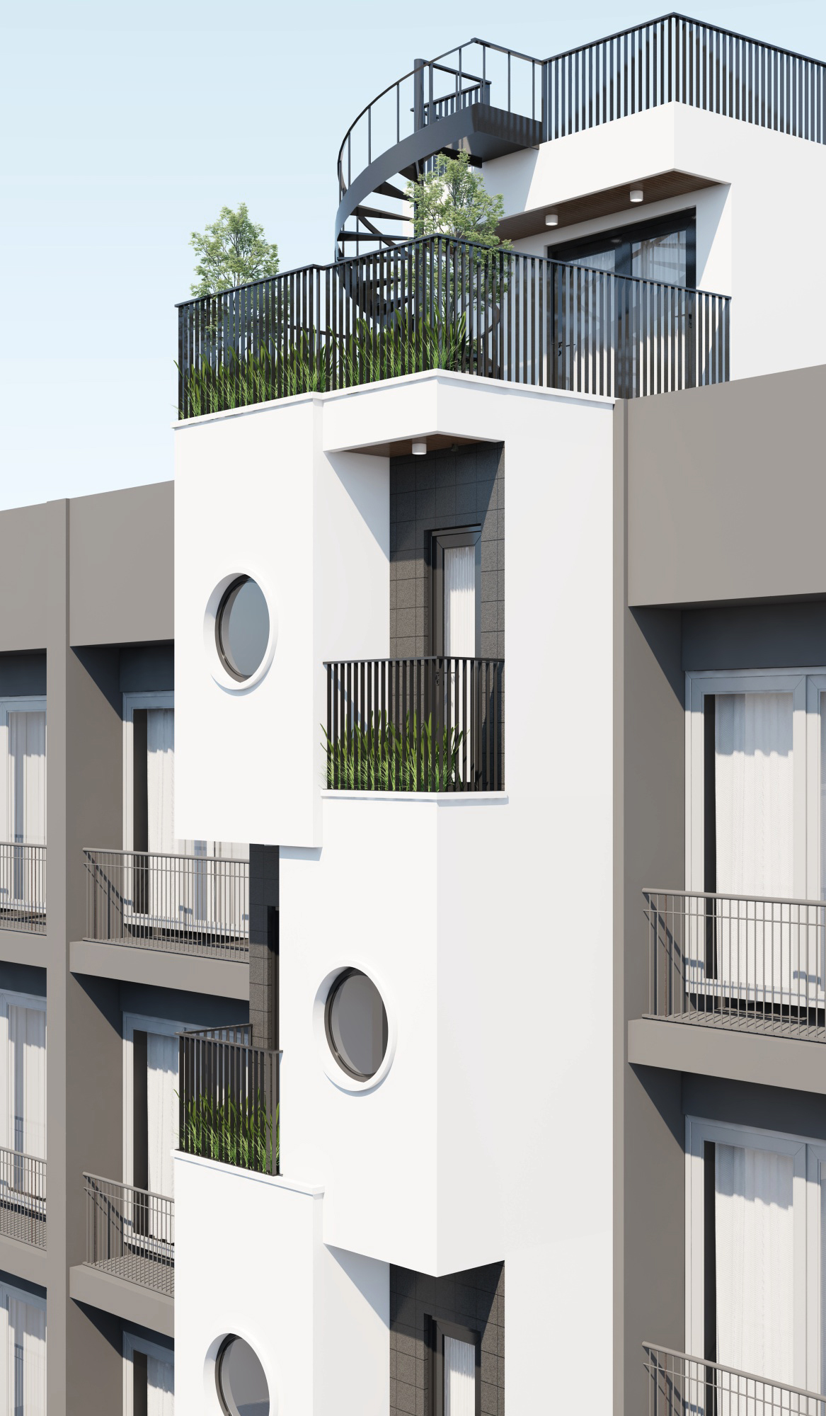 Trong các đô thị chật chội ngày nay, không phải ai cũng sở hữu được những căn nhà rộng rãi. Nhưng với diện tích chỉ 30m2, LT House đã được HAG Archi thiết kế thành công một không gian lý tưởng, mang lại đầy đủ tiện nghi và cảm giác sống thư thái như trong những ngôi nhà lớn hơn nhiều. Vậy ngôi nhà này được xử lý như thế nào để không hề bị “bí bách”? Bố cục mở thông minh, phòng khách kết nối liền mạch với khu vực sinh hoạt chung, tạo nên dòng chảy không gian liên tục. Đặc biệt, sân vườn trên mái không chỉ là nơi thư giãn mà còn giúp gia đình có thêm khoảng không gian xanh quý giá ngay trong lòng đô thị. Thang máy mini tích hợp là giải pháp di chuyển hiện đại, tiện lợi giữa các tầng nhưng không hề chiếm diện tích đáng kể. Đây là lựa chọn tối ưu cho những ngôi nhà cao tầng nhưng diện tích nhỏ. Không gian sống không chỉ là nơi ở mà còn phải mang lại cảm giác thư giãn. Ban công và sân thượng được thiết kế để đan xen cây xanh tự nhiên, vừa giúp làm dịu không gian vừa cải thiện không khí. Đó cũng là nơi lý tưởng để đọc sách hay thưởng thức cà phê vào buổi sáng. Ánh sáng và gió tự nhiên, những ô cửa sổ tròn lớn không chỉ tạo điểm nhấn độc đáo về mặt thẩm mỹ mà còn giúp ngôi nhà tràn ngập ánh sáng, đồng thời giữ cho không gian luôn thoáng mát, dễ chịu. Tại sao bạn nên chọn thiết kế này? Một ngôi nhà nhỏ không có nghĩa là phải đánh đổi cảm giác sống thoải mái. Với thiết kế thông minh và sự tối ưu hóa không gian, LT House là ví dụ điển hình cho việc tạo nên một không gian sống vừa vặn, đầy đủ tiện nghi mà vẫn ấm cúng.