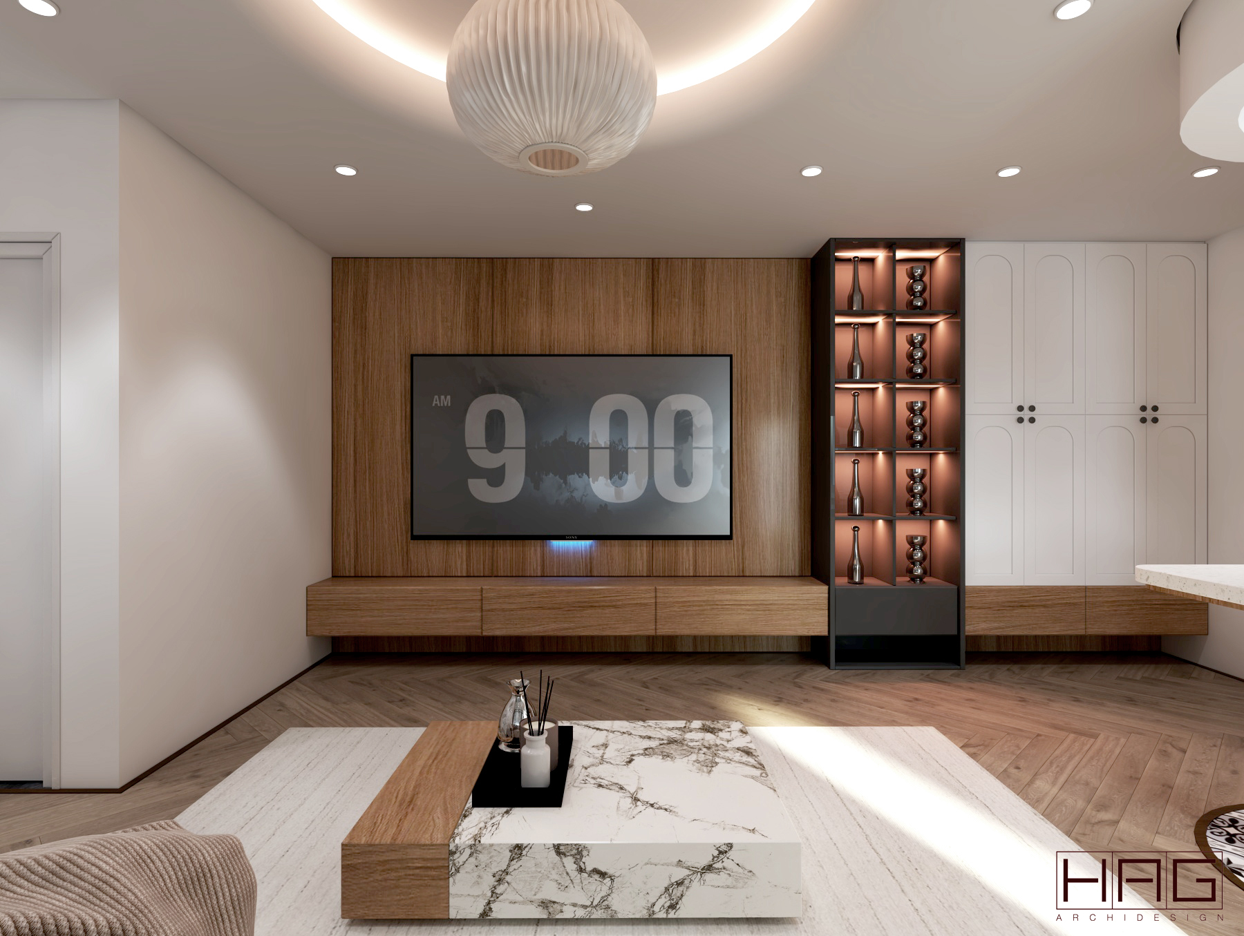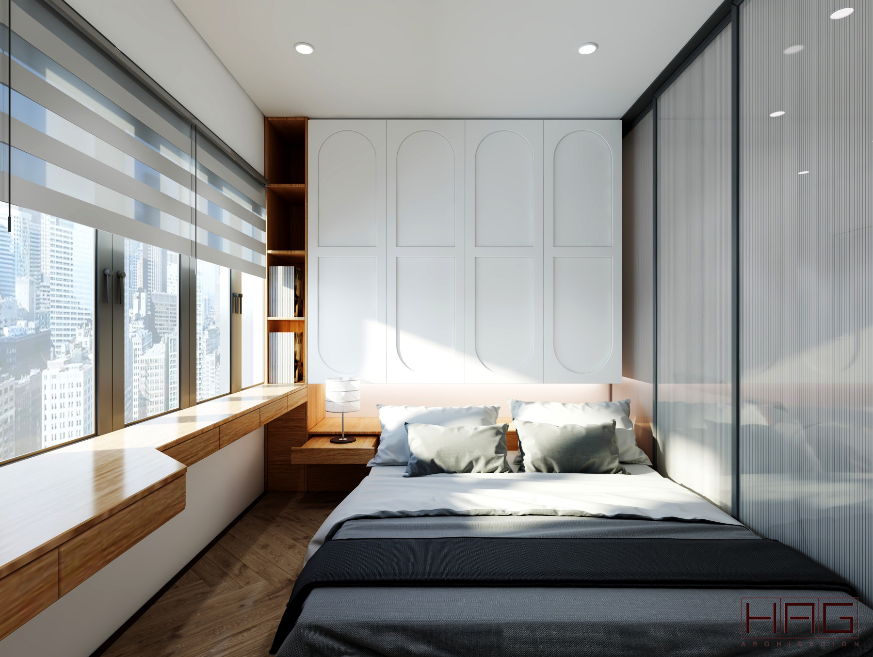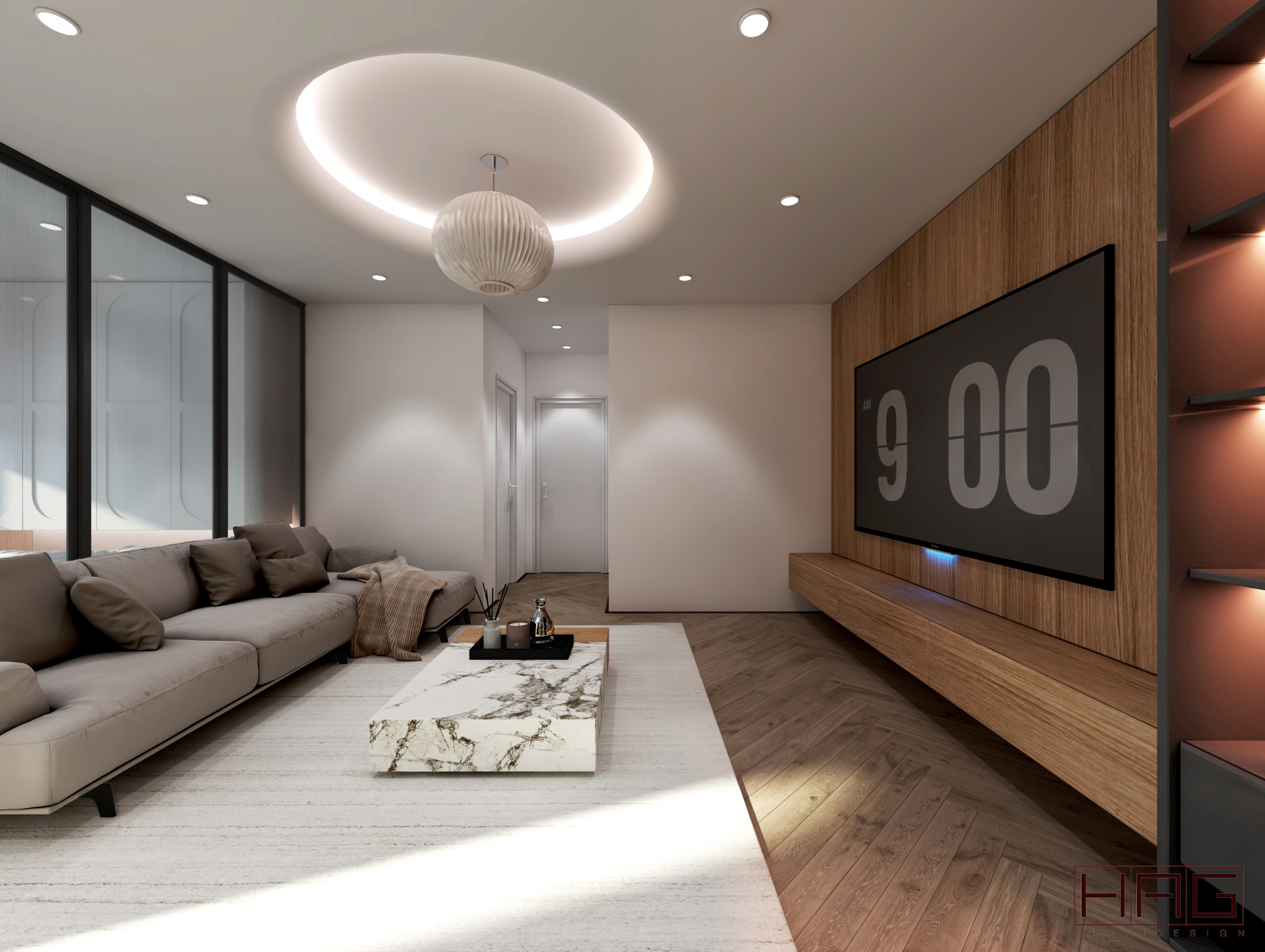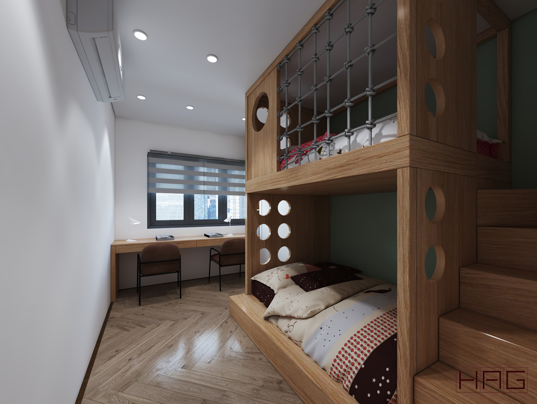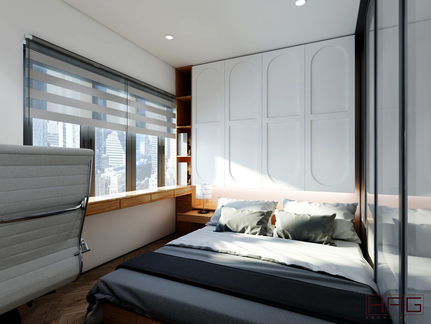 Căn hộ với nội thất cơ bản hai phòng ngủ được thiết kế cải tạo cơ bản thêm một phòng ngủ để phù hợp với nhu cầu của chủ đầu tư. Phong cách thiết kế hiện đại gam màu tương phản mạnh tạo nên các điểm nhấn ấn tượng cho căn hộ.