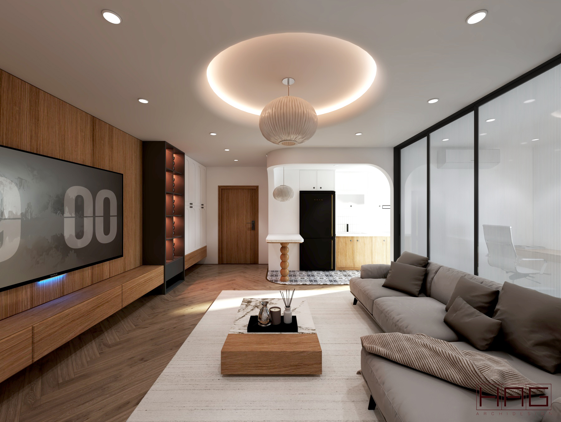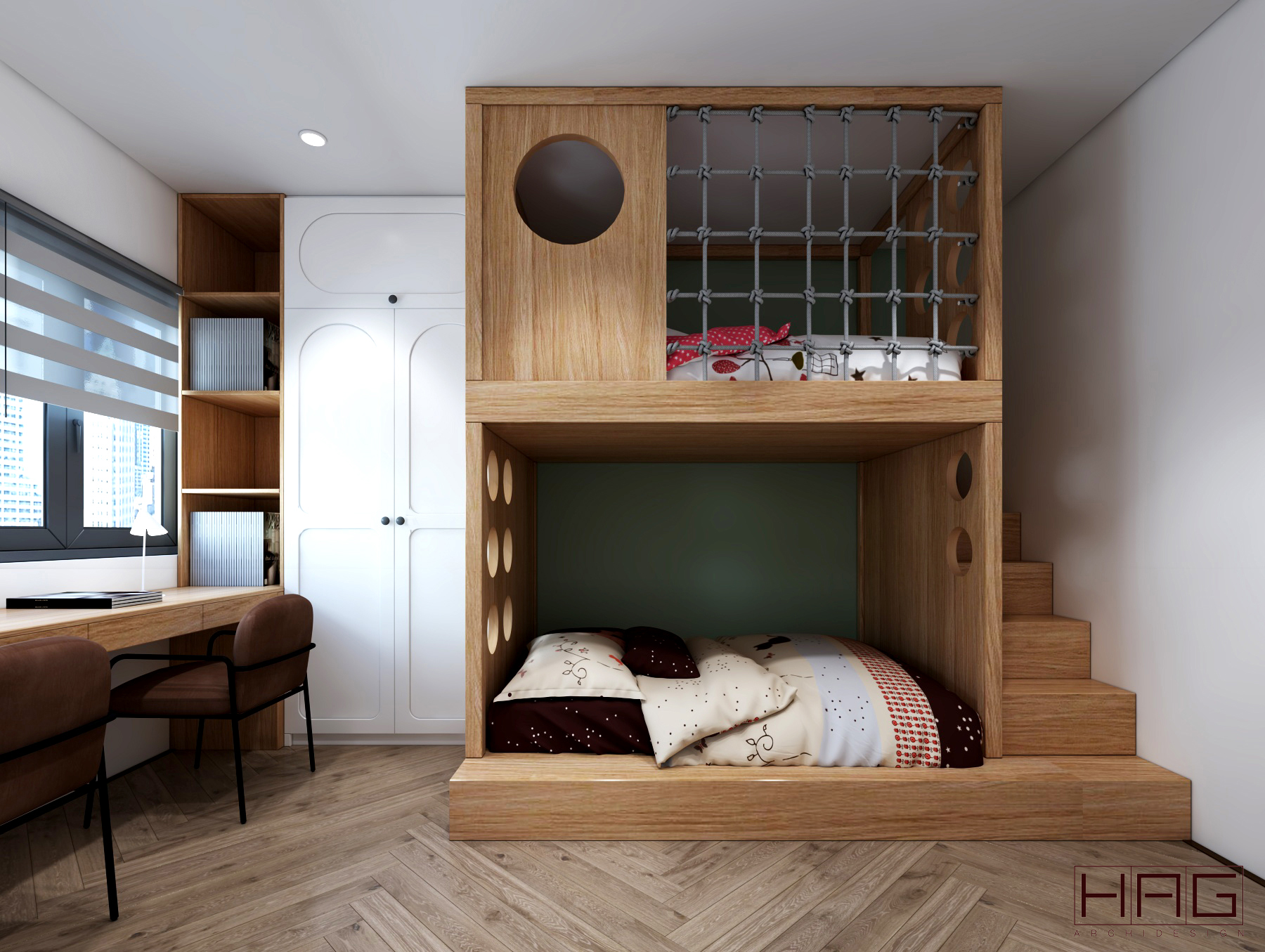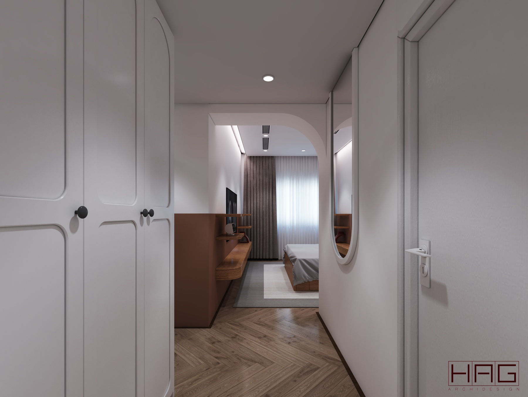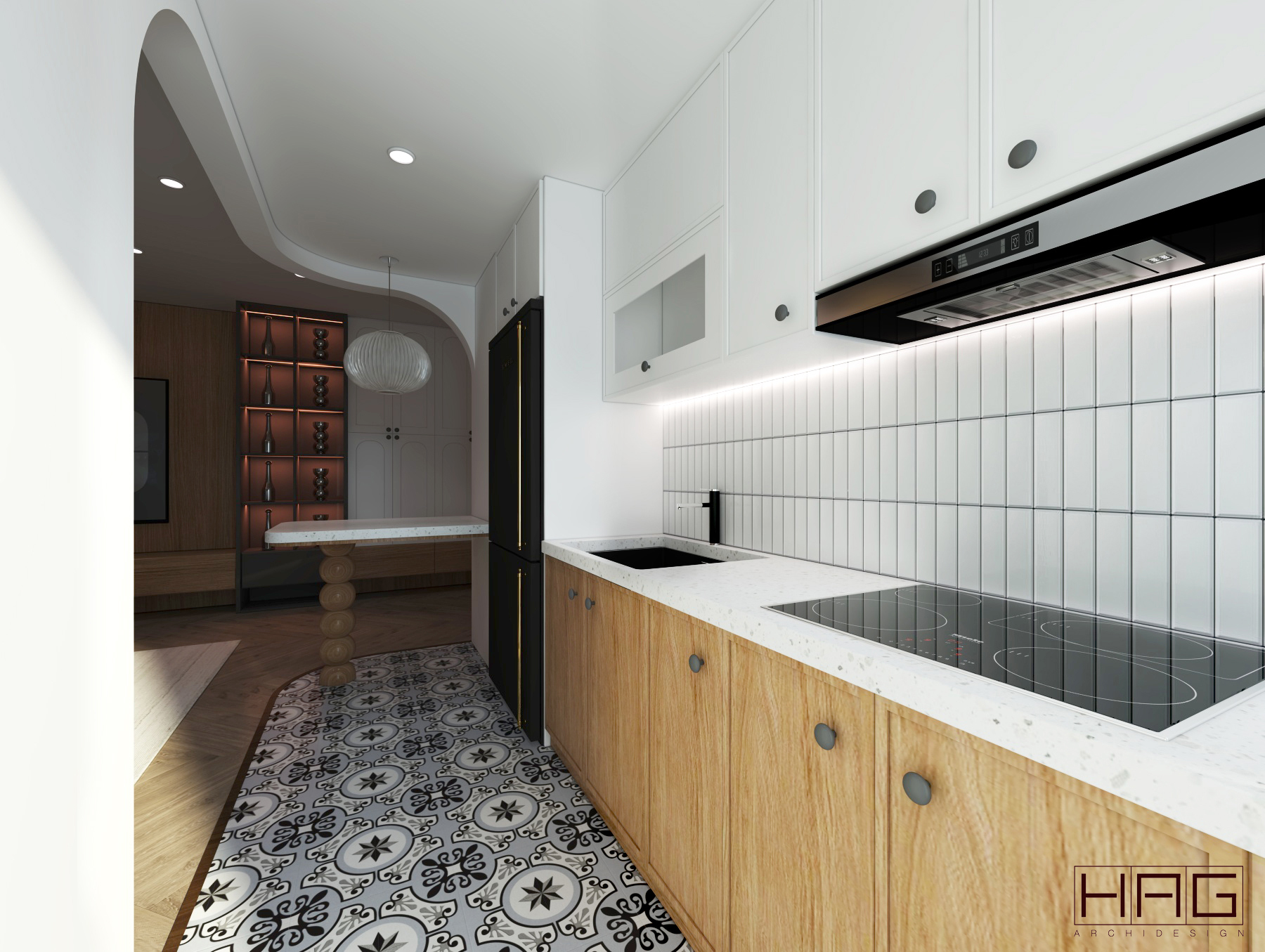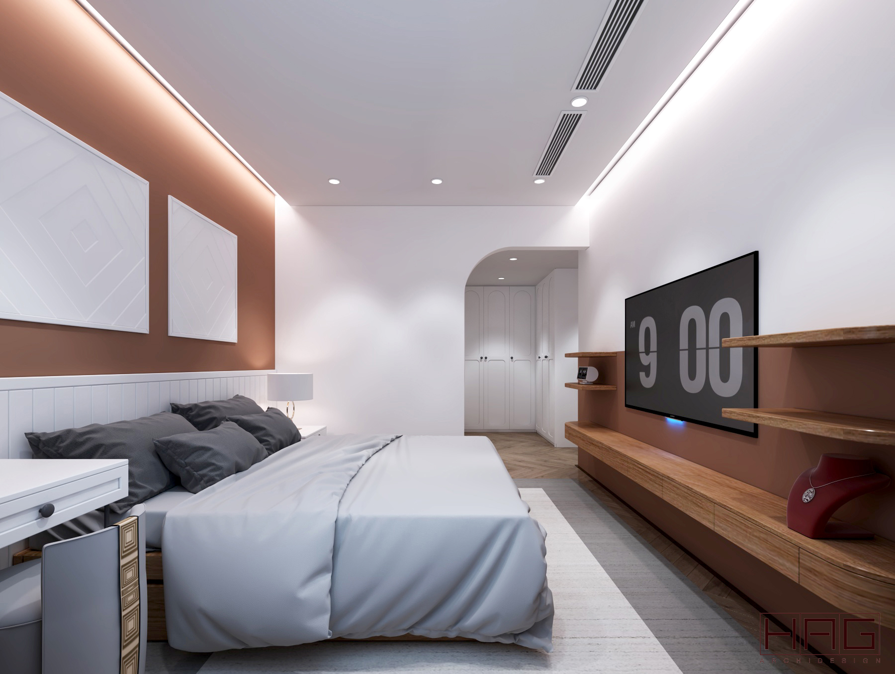 Căn hộ với nội thất cơ bản hai phòng ngủ được thiết kế cải tạo cơ bản thêm một phòng ngủ để phù hợp với nhu cầu của chủ đầu tư. Phong cách thiết kế hiện đại gam màu tương phản mạnh tạo nên các điểm nhấn ấn tượng cho căn hộ.